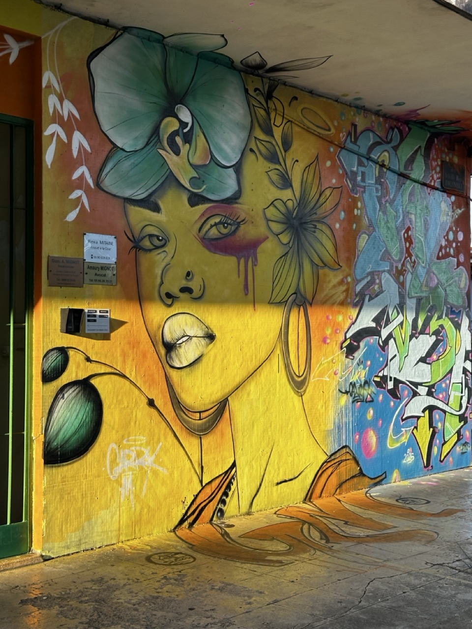 En vous promenant dans les rues de Pointe-à-Pitre, vous découvrirez un véritable musée à ciel ouvert. Le street art en Guadeloupe s’exprime ici à travers des fresques colorées, engagées et souvent impressionnantes.