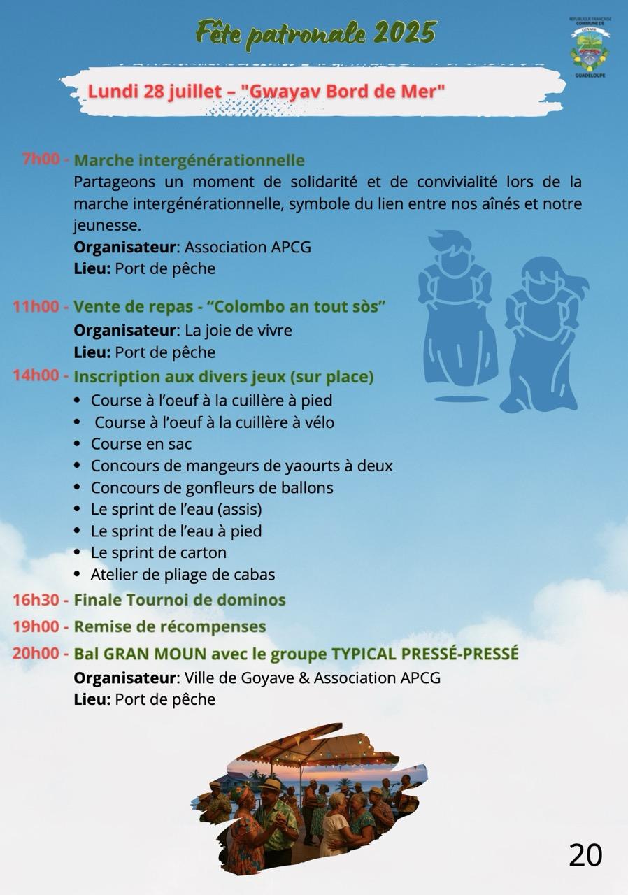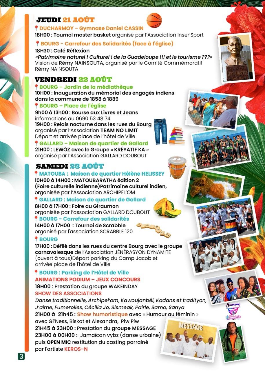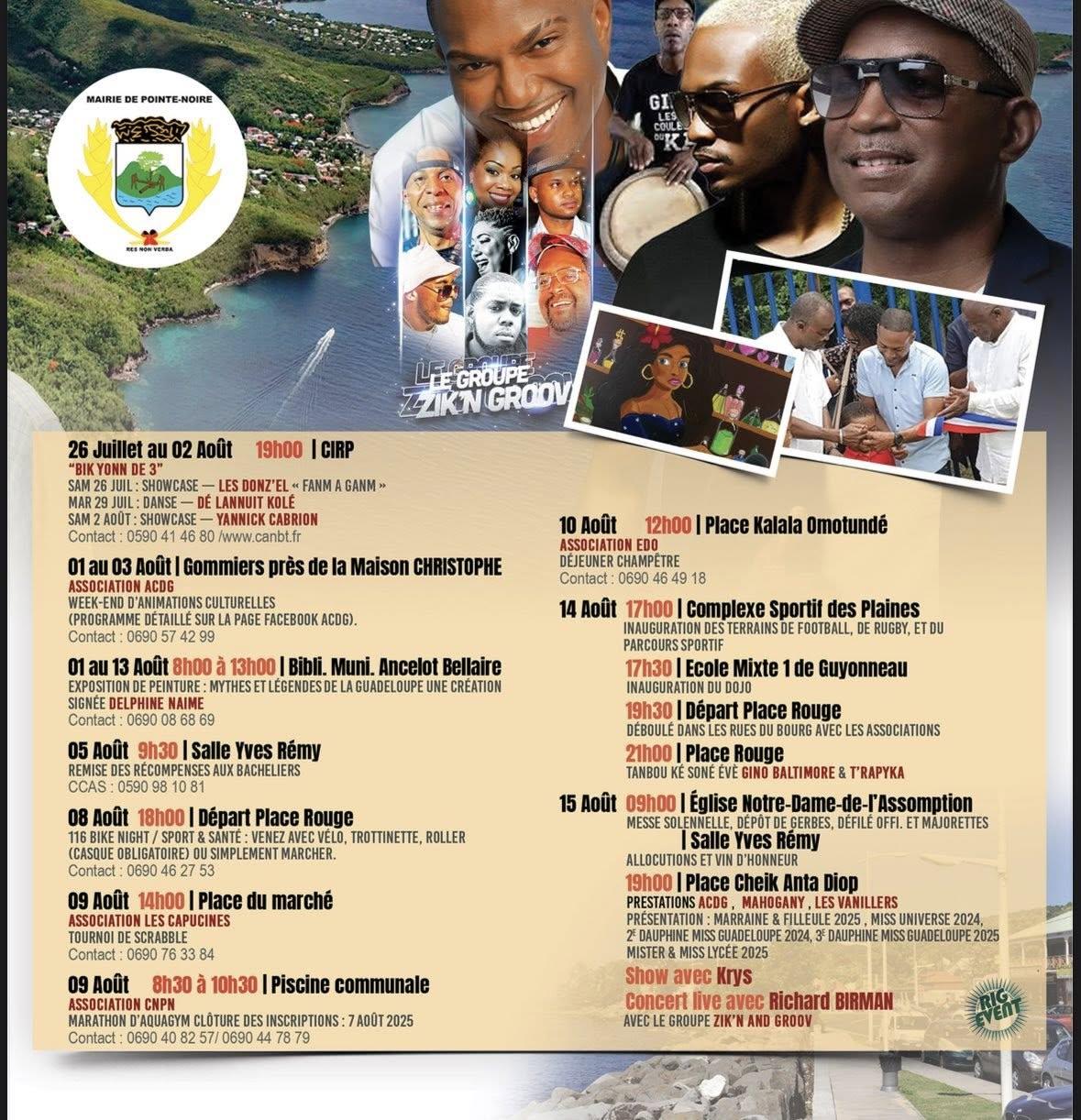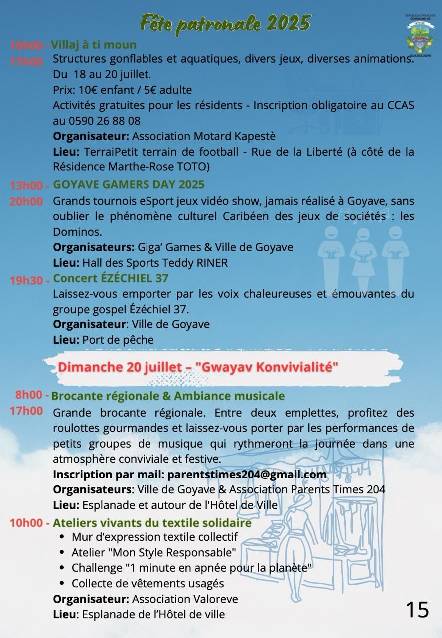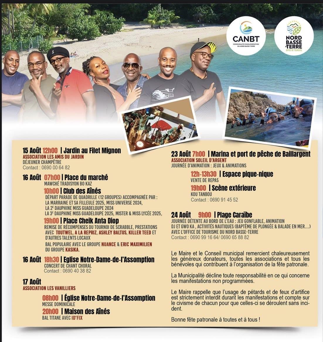 Au cœur de ces festivités : la messe solennelle, la procession costumée dans les rues fleuries, mais aussi les tournois sportifs, les bals populaires, les concerts de gwo ka et les marchés artisanaux débordants de couleurs et de saveurs péyi. C’est l’âme de la Guadeloupe qui s’exprime, entre foi et joie, entre mémoire et modernité. Et au final, c’est surtout un rendez-vous d’amour pour son territoire, ses racines… et un bon colombo au bord de la route 😋