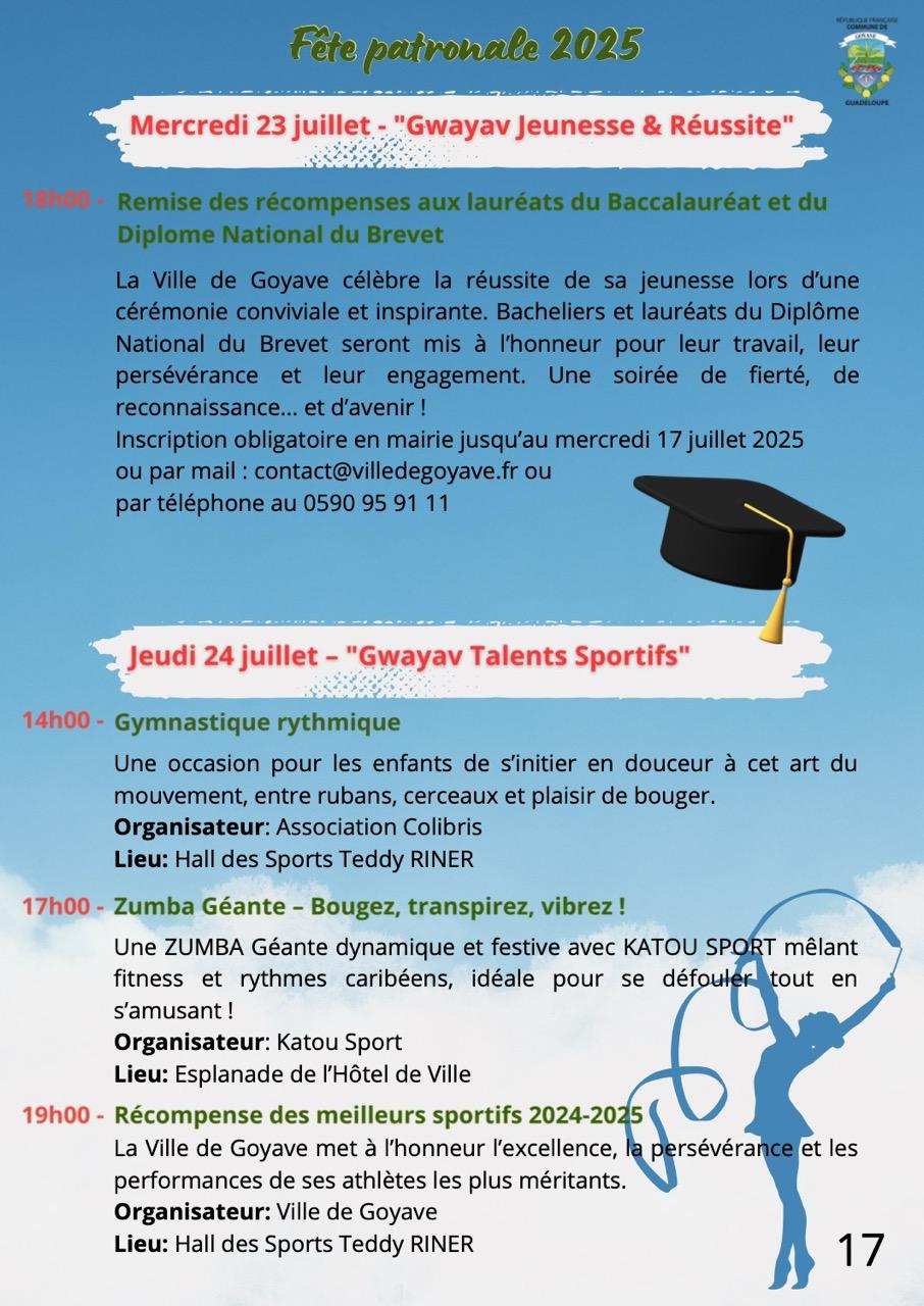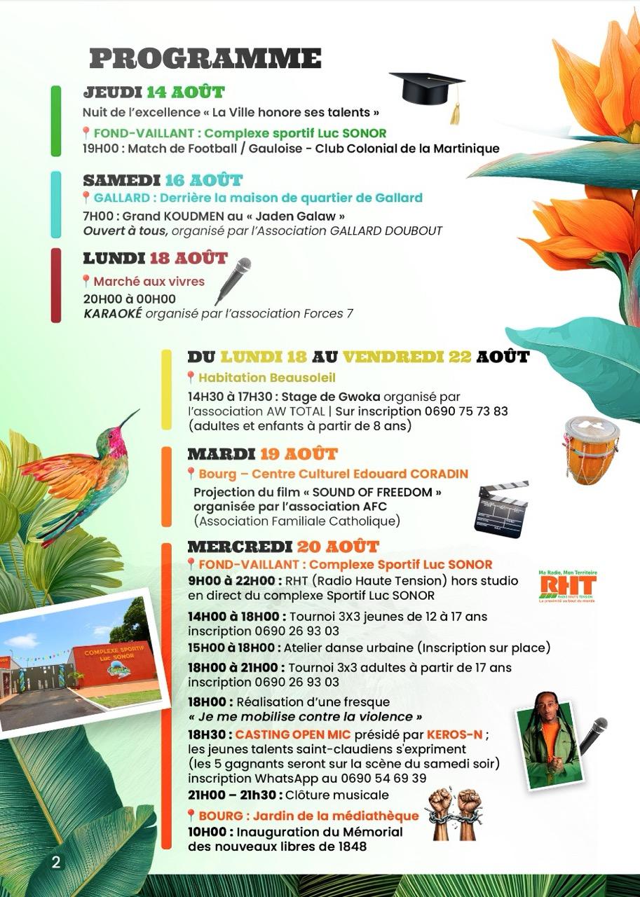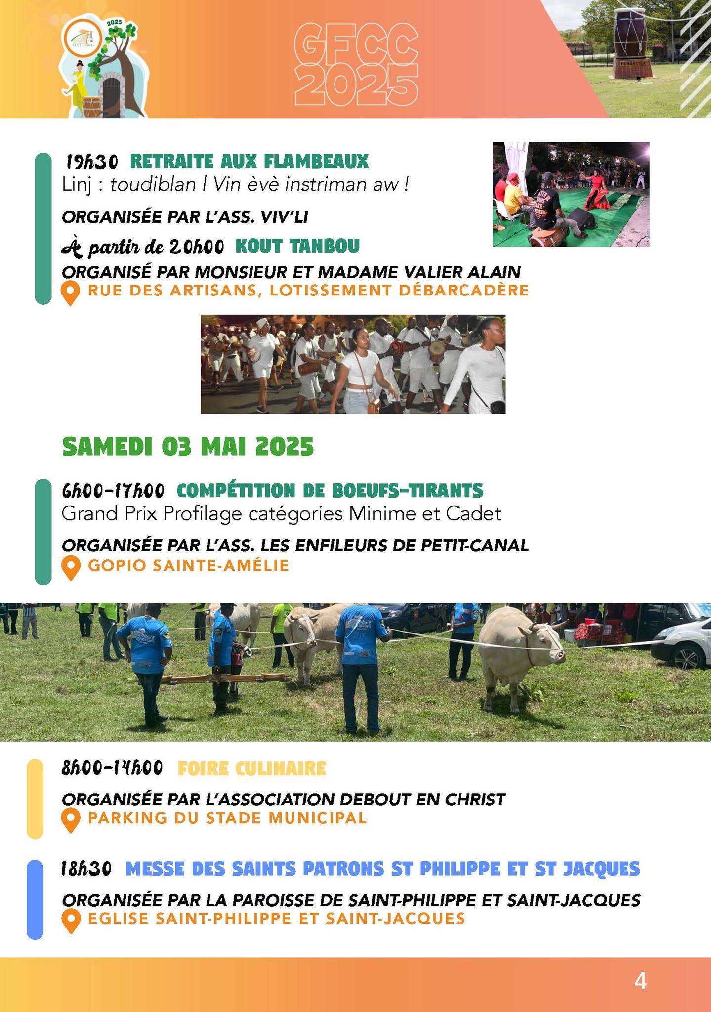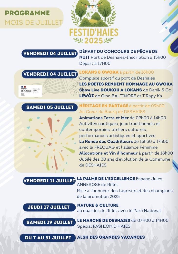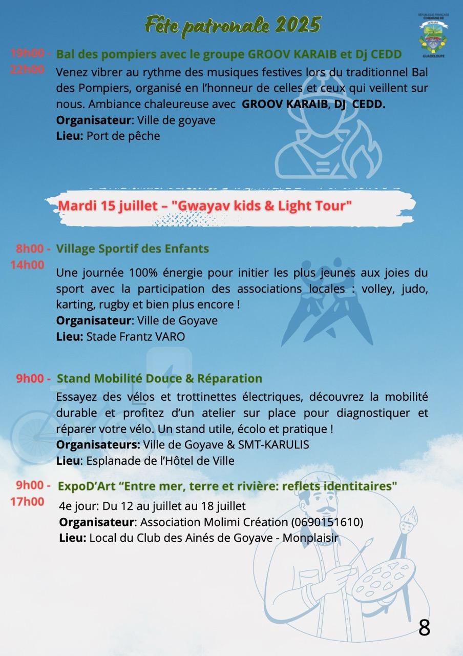 Au cœur de ces festivités : la messe solennelle, la procession costumée dans les rues fleuries, mais aussi les tournois sportifs, les bals populaires, les concerts de gwo ka et les marchés artisanaux débordants de couleurs et de saveurs péyi. C’est l’âme de la Guadeloupe qui s’exprime, entre foi et joie, entre mémoire et modernité. Et au final, c’est surtout un rendez-vous d’amour pour son territoire, ses racines… et un bon colombo au bord de la route 😋
